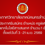 ข่าวประชาสัมพันธ์ข่าวสมัครงานงานบุคลากรงานประชาสัมพันธ์ ประกาศวิทยาลัยเทคนิคนครลำปาง เรื่อง รับสมัครลูกจ้างชั่วคราว ตำแหน่งครูพิเศษสอนสาขาวิชาเทคโนโลยีสารสนเทศ วันที่ 16 – 23 สิงหาคม 2565 16 สิงหาคม 2022 admin ประกาศวิทยาลัยเทคนิคนครลำปาง เรื่อง รับสมัครลูกจ้างชั่วคราว ตำแหน่งครูพิเศษสอนสาขาวิชาเทคโนโลยีสารสนเทศ วันที่ 16 – 23 สิงหาคม 2565<<คลิก>> Recommended For Youประกาศวิทยาลัยเทคนิคนครลำปาง เรื่อง ประกาศรับสมัคร ตำแหน่ง ครูพิเศษสอน สาขาเทคโนโลยีสารสนเทศ จำนวน 1 อัตรา ตั้งแต่วันที่ 3 -21 เม.ย. 2569ประกาศรับสมัคร ตำแหนประกาศวิทยาลัยเทคนิคนครลำปาง เรื่อง ประกาศผลสอบคัดเลือกลูกจ้างชั่วคราว ตำแหน่ง พนักงานขับรถประกาศผลสอบคัดเลือก ประกาศวิทยาลัยเทคนิคนครลำปาง เรื่อง ประกาศรายชื่อผู้มีสิทธิ์สอบลูกจ้างชั่วคราว ตำแหน่ง พนังงานขับรถประกาศรายชื่อผู้มีสิประกาศวิทยาลัยเทคนิคนครลำปาง เรื่อง ประกาศรายชื่อผู้มีสิทธิ์สอบลูกจ้างชั่วคราว ตำแหน่ง นักการภารโรงประกาศรายชื่อผู้มีสิประกาศวิทยาลัยเทคนิคนครลำปาง เรื่อง ประกาศรับสมัครลูกจ้างชั่วคราว ตำแหน่ง พนักงานขับรถ จำนวน 1 อัตราประกาศรับสมัคร ตำแหนประกาศวิทยาลัยเทคนิคนครลำปาง เรื่อง ประกาศรับสมัครลูกจ้างชั่วคราว ตำแหน่ง นักการภารโรง จำนวน 2 อัตราประกาศรับสมัคร ตำแหน Post Views: 668 ประกาศผลสอบคัดเลือก-ตำแหน่งเจ้าหน้าที่งานประชาสัมพันธ์ ประกาศวิทยาลัยเทคนิคนครลำปาง เรื่อง รับสมัครลูกจ้างชั่วคราว ตำแหน่งครูพิเศษสอนสาขาวิชาช่างยนต์ วันที่ 22 – 26 สิงหาคม 2565 ใส่ความเห็น ยกเลิกการตอบอีเมลของคุณจะไม่แสดงให้คนอื่นเห็น ช่องข้อมูลจำเป็นถูกทำเครื่องหมาย *ความเห็น * ชื่อ * อีเมล * เว็บไซต์ บันทึกชื่อ, อีเมล และชื่อเว็บไซต์ของฉันบนเบราว์เซอร์นี้ สำหรับการแสดงความเห็นครั้งถัดไป Δ