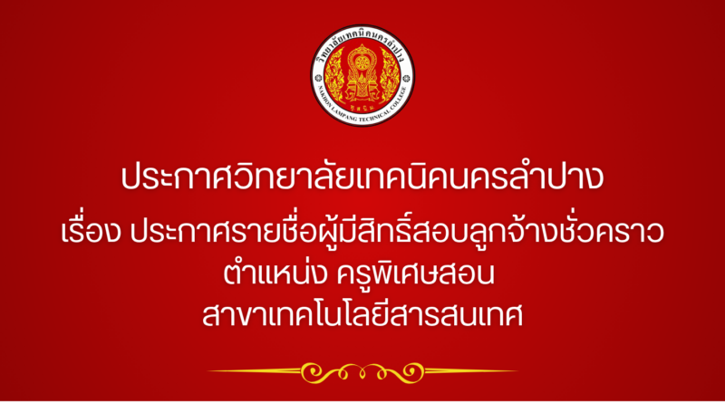 ข่าวประกาศข่าวประชาสัมพันธ์ข่าวรับสมัครงานข่าวสมัครงานงานบุคลากร 6 มีนาคม 2026 admin ประกาศวิทยาลัยเทคนิคนครลำปาง เรื่อง ประกาศผลสอบคัดเลือกลูกจ้างชั่วคราว ตำแหน่ง พนักงานขับรถ ประกาศผลสอบคัดเลือก Read More
