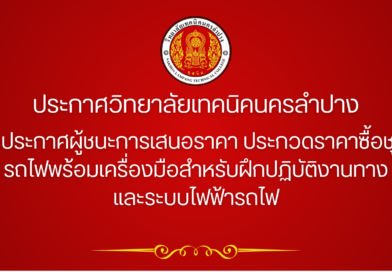 ประกาศวิทยาลัยเทคนิคนครลำปาง เรื่อง ประกาศผู้ชนะการเสนอราคา ประกวดราคาซื้อชุดทางรถไฟพร้อมเครื่องมือสำหรับฝึกปฏิบัติงานทางและระบบไฟฟ้ารถไฟ