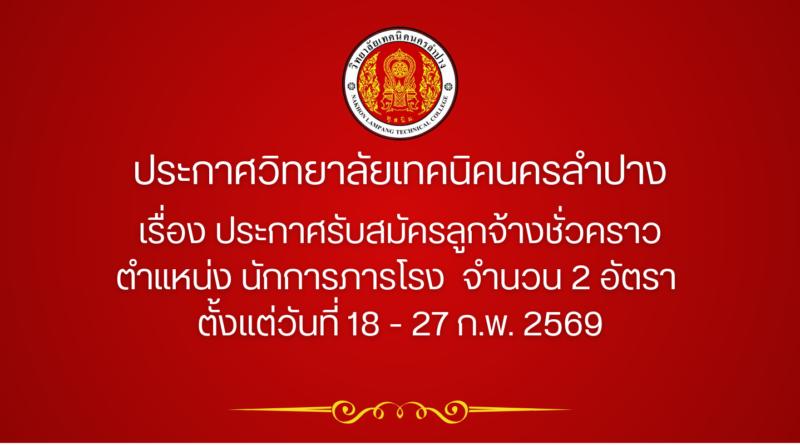 ข่าวประกาศข่าวรับสมัครงานข่าวสมัครงานงานบุคลากร ประกาศวิทยาลัยเทคนิคนครลำปาง เรื่อง ประกาศรับสมัครลูกจ้างชั่วคราว ตำแหน่ง นักการภารโรง จำนวน 2 อัตรา 18 กุมภาพันธ์ 2026 admin ประกาศรับสมัคร ตำแหน่ง นักการภารโรง Recommended For Youประกาศวิทยาลัยเทคนิคนครลำปาง เรื่อง ประกาศรับสมัครลูกจ้างชั่วคราว ตำแหน่ง พนักงานขับรถ จำนวน 1 อัตราประกาศรับสมัคร ตำแหนประกาศวิทยาลัยเทคนิคนครลำปาง เรื่อง ประกาศผลสอบคัดเลือกลูกจ้างชั่วคราว ตำแหน่ง นักการภารโรงประกาศผลสอบคักเลือกลประกาศวิทยาลัยเทคนิคนครลำปาง เรื่อง ประกาศรายชื่อผู้มีสิทธิ์สอบลูกจ้างชั่วคราว ตำแหน่ง นักการภารโรงประกาศราชชื่อผู้มีสิประกาศวิทยาลัยเทคนิคนครลำปาง เรื่อง ประกาศผู้ชนะการจัดซื้อจัดจ้างหรือผู้ได้รับการคัดเลือกและสาระสำคัญของหนังสือสัญญา หรือข้อตกลงเป็นหนังสือ ปีงบประมาณ ๒๕๖๙ ประจำไตรมาสที่ ๑ (เดือนตุลาคม ๒๕๖๘ ถึง เดือนธันวาคม ๒๕๖๘)รายงานไตรมาสที่1ประกาศวิทยาลัยเทคนิคนครลำปาง เรื่อง ประกาศรับสมัครลูกจ้างชั่วคราว ตำแหน่ง นักการภารโรง จำนวน 2 อัตรา ตั้งแต่วันที่ 14 – 30 ม.ค. 2569ประกาศรับสมัคร ตำแหนประกาศวิทยาลัยเทคนิคนครลำปาง เรื่อง ประกาศรับสมัคร ตำแหน่ง ครูพิเศษสอน สาขาเทคโนโลยีสารสนเทศ จำนวน 1 อัตรา ตั้งแต่วันที่ 24 ธ.ค.-19 ม.ค.2569ประกาศรับสมัคร ตำแหน Post Views: 6 ประกาศวิทยาลัยเทคนิคนครลำปาง เรื่อง ประกาศผลสอบคัดเลือกลูกจ้างชั่วคราว ตำแหน่ง นักการภารโรง ประกาศวิทยาลัยเทคนิคนครลำปาง เรื่อง ประกาศรับสมัครลูกจ้างชั่วคราว ตำแหน่ง พนักงานขับรถ จำนวน 1 อัตรา ใส่ความเห็น ยกเลิกการตอบอีเมลของคุณจะไม่แสดงให้คนอื่นเห็น ช่องข้อมูลจำเป็นถูกทำเครื่องหมาย *ความเห็น * ชื่อ * อีเมล * เว็บไซต์ บันทึกชื่อ, อีเมล และชื่อเว็บไซต์ของฉันบนเบราว์เซอร์นี้ สำหรับการแสดงความเห็นครั้งถัดไป Δ