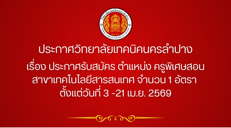 ข่าวประกาศข่าวสมัครงานงานบุคลากร ประกาศวิทยาลัยเทคนิคนครลำปาง เรื่อง ประกาศรับสมัคร ตำแหน่ง ครูพิเศษสอน สาขาเทคโนโลยีสารสนเทศ จำนวน 1 อัตรา ตั้งแต่วันที่ 3 -21 เม.ย. 2569 2 เมษายน 2026 admin ประกาศรับสมัคร ตำแหน่ง ครูพิเศษสอน สาขาเทคโนโลยีสารสนเทศ จำนวน 1 อัตรา ตั้งแต่วันที่ 3 -21 เม.ย. 2569 Recommended For Youประกาศวิทยาลัยเทคนิคนครลำปาง เรื่อง ประกาศผลสอบคัดเลือกลูกจ้างชั่วคราว ตำแหน่ง พนักงานขับรถประกาศผลสอบคัดเลือก ประกาศวิทยาลัยเทคนิคนครลำปาง เรื่อง ประกาศรายชื่อผู้มีสิทธิ์สอบลูกจ้างชั่วคราว ตำแหน่ง พนังงานขับรถประกาศรายชื่อผู้มีสิประกาศวิทยาลัยเทคนิคนครลำปาง เรื่อง ประกาศรายชื่อผู้มีสิทธิ์สอบลูกจ้างชั่วคราว ตำแหน่ง นักการภารโรงประกาศรายชื่อผู้มีสิประกาศวิทยาลัยเทคนิคนครลำปาง เรื่อง ประกาศผลการเรียน ภาคเรียนที่ 2 ปีการศึกษา 2568 (ระบบ ศธ 02 ออนไลน์)ประกาศผลการเรียนที่ 2 ประกาศวิทยาลัยเทคนิคนครลำปาง เรื่อง ประกาศรับสมัครลูกจ้างชั่วคราว ตำแหน่ง พนักงานขับรถ จำนวน 1 อัตราประกาศรับสมัคร ตำแหนประกาศวิทยาลัยเทคนิคนครลำปาง เรื่อง ประกาศรับสมัครลูกจ้างชั่วคราว ตำแหน่ง นักการภารโรง จำนวน 2 อัตราประกาศรับสมัคร ตำแหน Post Views: 8 ประกาศวิทยาลัยเทคนิคนครลำปาง เรื่อง ประกาศผลสอบคัดเลือกลูกจ้างชั่วคราว ตำแหน่ง พนักงานขับรถ ๒ เมษายน วันคล้ายวันพระราชสมภพ สมเด็จพระกนิษฐาธิราชเจ้า กรมสมเด็จพระเทพรัตนราชสุดาฯ สยามบรมราชกุมารี ใส่ความเห็น ยกเลิกการตอบอีเมลของคุณจะไม่แสดงให้คนอื่นเห็น ช่องข้อมูลจำเป็นถูกทำเครื่องหมาย *ความเห็น * ชื่อ * อีเมล * เว็บไซต์ บันทึกชื่อ, อีเมล และชื่อเว็บไซต์ของฉันบนเบราว์เซอร์นี้ สำหรับการแสดงความเห็นครั้งถัดไป Δ