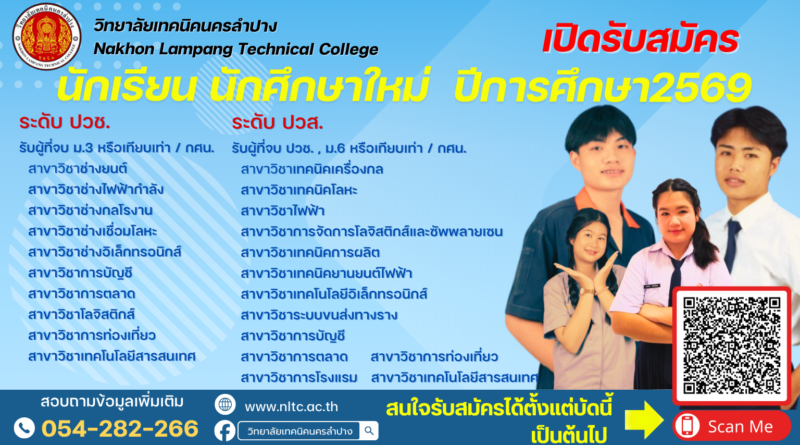 ข่าวประกาศข่าวประชาสัมพันธ์ข่าวรับสมัครงาน 29 กรกฎาคม 2025 admin ประกาศวิทยาลัยเทคนิคนครลำปาง เรื่อง รับสมัครลูกจ้างชั่วคราว ตำแหน่ง พนักงานขับรถ จำนวน 1 อัตรา ประกาศรับสมัคร ตำแหน Read More