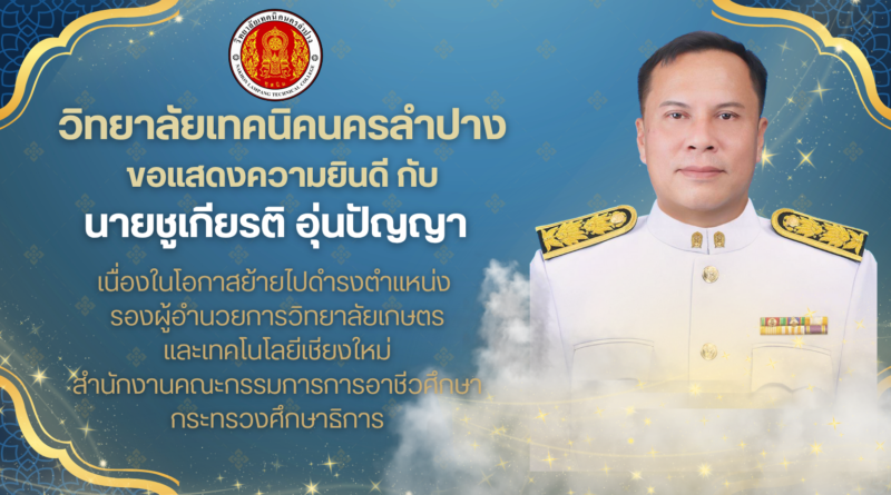 slide_info ขอแสดงความยินดี กับ นายชูเกียรติ อุ่นปัญญา รองผู้อำนวยการวิทยาลัยเทคนิคนครลำปาง เนื่องในโอกาสย้ายไปดำรงตำแหน่ง รองผู้อำนวยการวิทยาลัยเกษตรและเทคโนโลยีเชียงใหม่ ด้วยความยินดียิ่ง 2 ตุลาคม 20252 ตุลาคม 2025 admin Recommended For Youยินดีต้อนรับ นายเอกพงษ์ ลืมนัด รองผู้อำนวยการวิทยาลัยการอาชีพบ้านตาก เนื่องในโอกาสย้ายมาดำรงตำแหน่ง รองผู้อำนวยการวิทยาลัยเทคนิคนครลำปาง ด้วยความยินดียิ่งรับสมัครนักเรียนนักศึกษา ปีการศึกษา 2569 รับสมัครตั้งแต่วันที่ 18 สิงหาคม 2568 เป็นต้นไปNO Gift Policy “งด การให้ ไม่รับ ของขวัญ”๑๒ สิงหาคม วันเฉลิมพระชนมพรรษา สมเด็จพระนางเจ้าสิริกิติ์ พระบรมราชินีนาถ พระบรมราชชนนีพันปีหลวง Post Views: 14 รับสมัครนักเรียนนักศึกษา ปีการศึกษา 2569 รับสมัครตั้งแต่วันที่ 18 สิงหาคม 2568 เป็นต้นไป ยินดีต้อนรับ นายเอกพงษ์ ลืมนัด รองผู้อำนวยการวิทยาลัยการอาชีพบ้านตาก เนื่องในโอกาสย้ายมาดำรงตำแหน่ง รองผู้อำนวยการวิทยาลัยเทคนิคนครลำปาง ด้วยความยินดียิ่ง ใส่ความเห็น ยกเลิกการตอบอีเมลของคุณจะไม่แสดงให้คนอื่นเห็น ช่องข้อมูลจำเป็นถูกทำเครื่องหมาย *ความเห็น * ชื่อ * อีเมล * เว็บไซต์ บันทึกชื่อ, อีเมล และชื่อเว็บไซต์ของฉันบนเบราว์เซอร์นี้ สำหรับการแสดงความเห็นครั้งถัดไป Δ